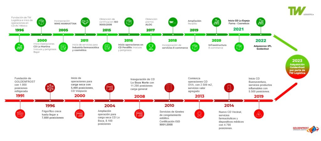 Un hito clave fue la adquisición de GOLDENFROST el 2022, ampliando las capacidades operativas y incorporando la categoría de fríos y congelados, convirtiendo hoy a TW en un operador logístico multicategoría que busca el crecimiento de la mano de las necesidades de los clientes.